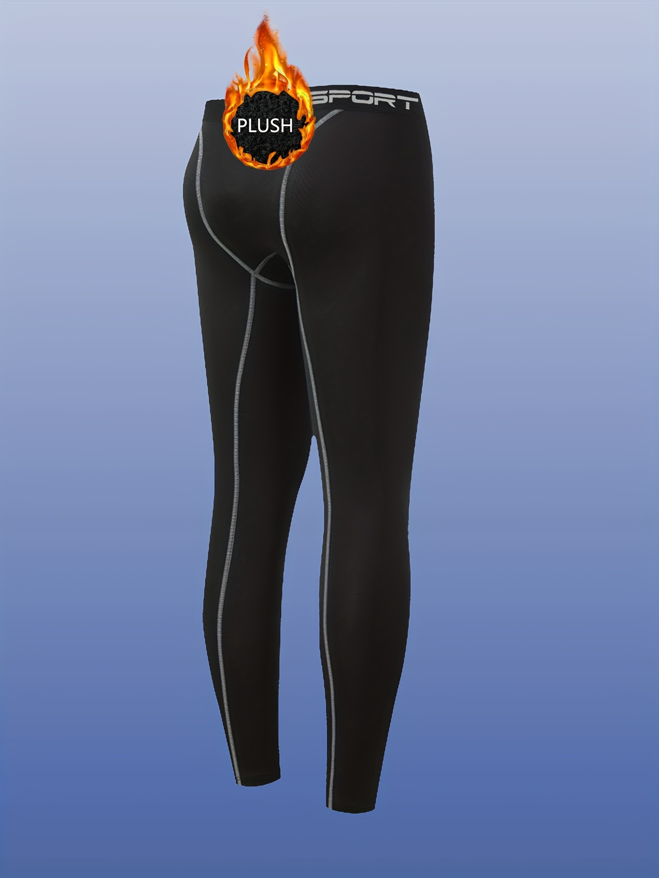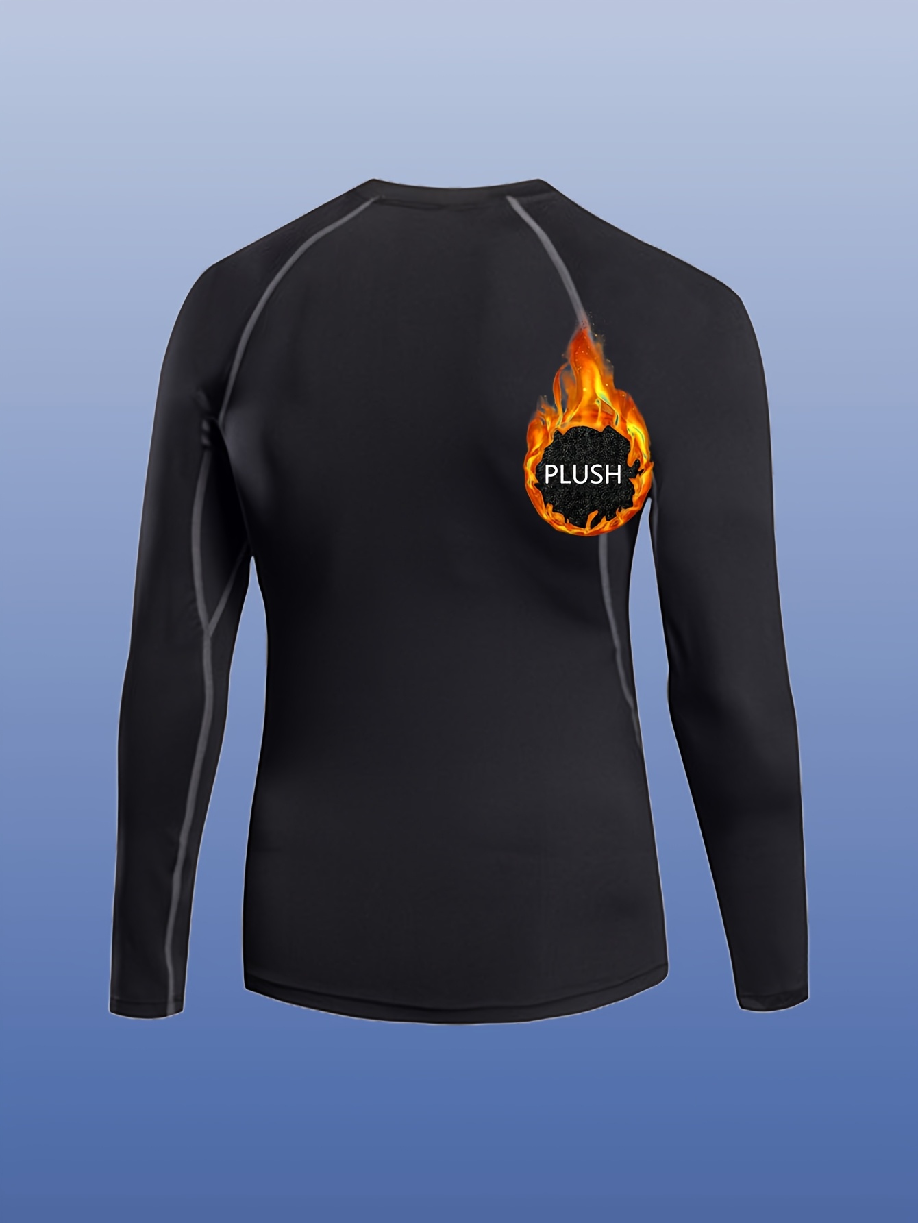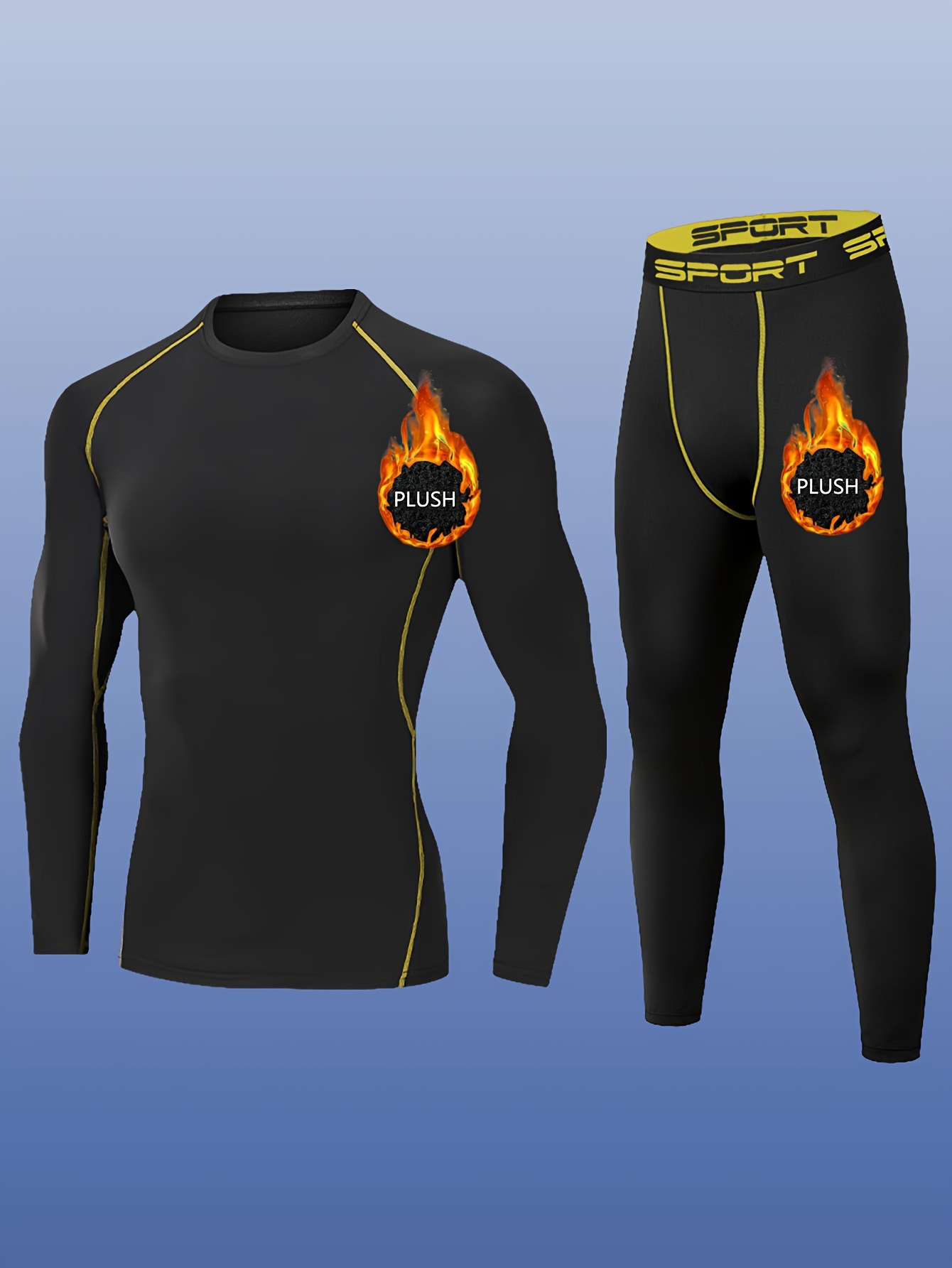 2pcs Men'S Plush Sport Compression Shirt & Leggings Set - Quick-Dry, High-Elasticity, Breathable Athletic Underwear for Running & Outdoor Activities, Black with Pink Accents, Autumn Winter Workout Gear, Workout Clothes, Autum